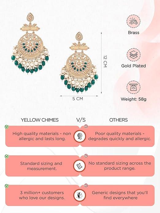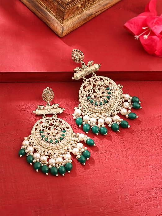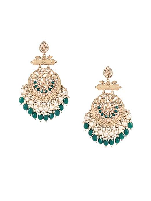 Ethnic Gold Plated Enamel Handpainted Design Stones Beads Traditional Chandbali Earrings for Women