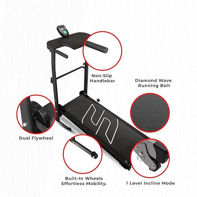 Take control of your workout with "Your Pace, Your Power" through manual speed adjustment for personalized fitness goals. Add an extra challenge and variety with one level of manual incline.