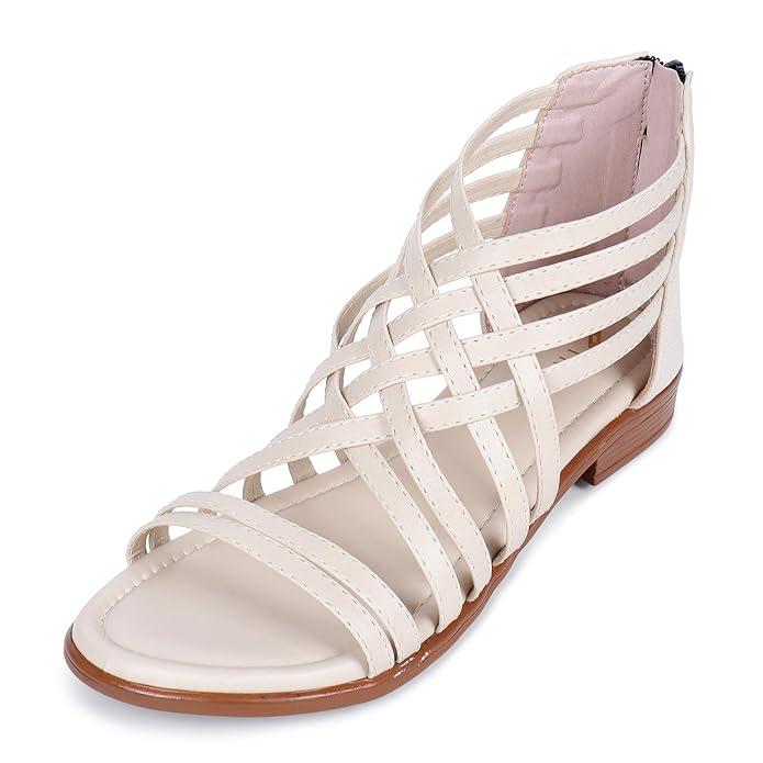 COMFORTABLE : This flat sandal for women comes with durable and comfortable bands, it is super easy to slip on and off, more convenient, and time-saving than other buckle footwear. Moreover, the zipper provide a comfortable wear experience and a better fit.