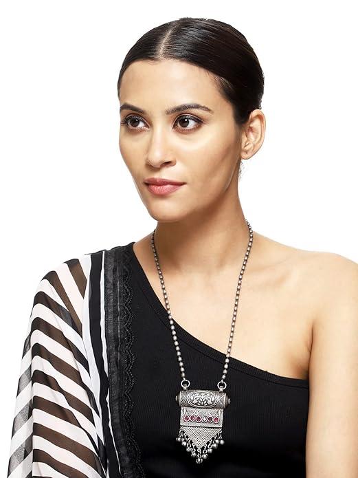 Intricately designed oxidized silver choker necklace that exudes elegance and charm.