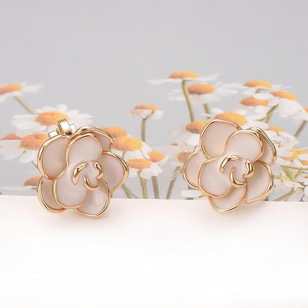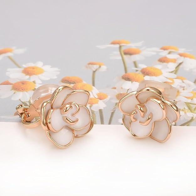 Exquisite Workmanship:1.5*1.5cm clip on earrings for women ,3-Layer Gold Plated Process,a long time Keep Bright as New, High Quality Handmade, Hypoallergenic,not easy to fade, Gold Plated Black Rose Flower clip on earrings, Metal Type:Eco Alloy(18K Rose / White Gold-Plated) clip on earrings for women, white rose earrings comes with a free exquisite jewelry gift box.