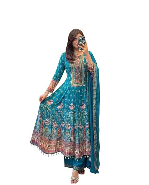 Women's Beautiful Heavy Pure Chinon Ready mate Anarkali Kurti and Palazzo with Dupatta Set. for Women Wedding Occasion