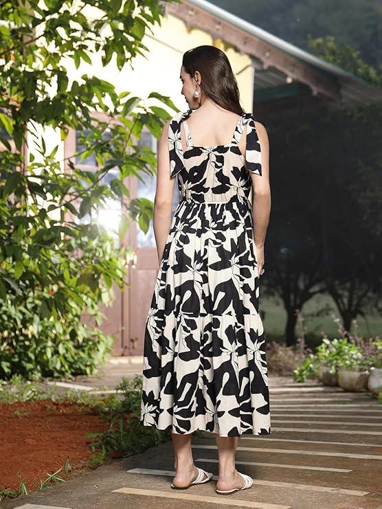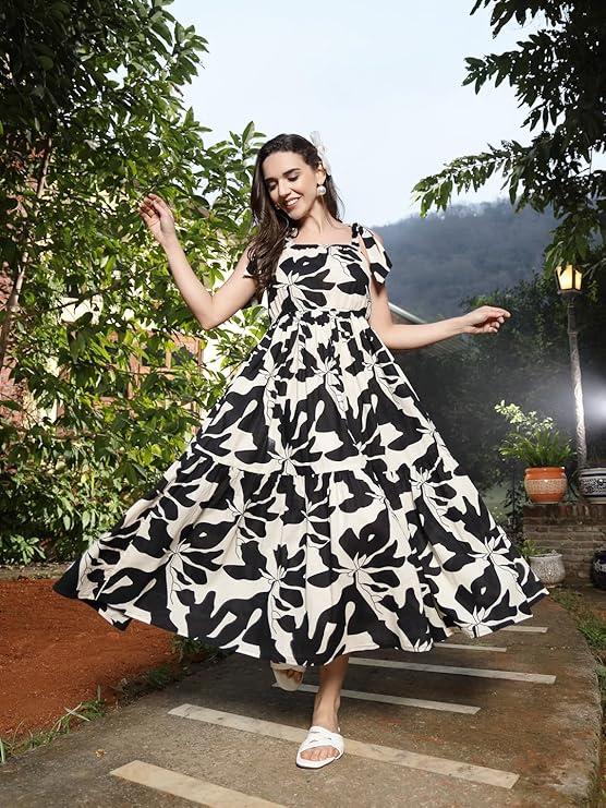 Material type : CottonLength : MaxiOccasion type : CasualSleeve type : SleevelessPattern : FloralStyle : Fit And FlareCountry of Origin : India