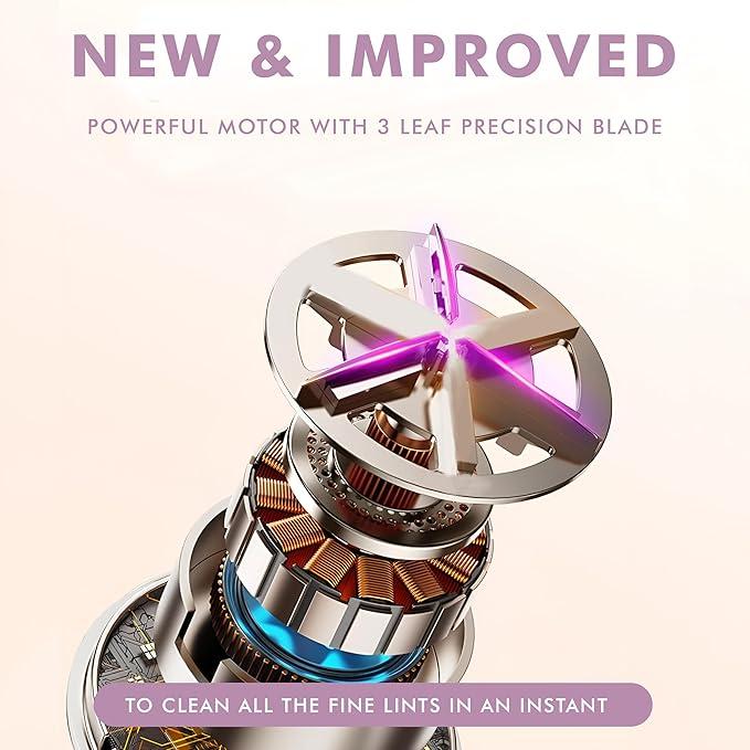 Electric Lint Remover with 3-Leaf Blade: Equipped with a powerful motor and sharp 3-leaf blade for effective lint removal from all types of fabrics.