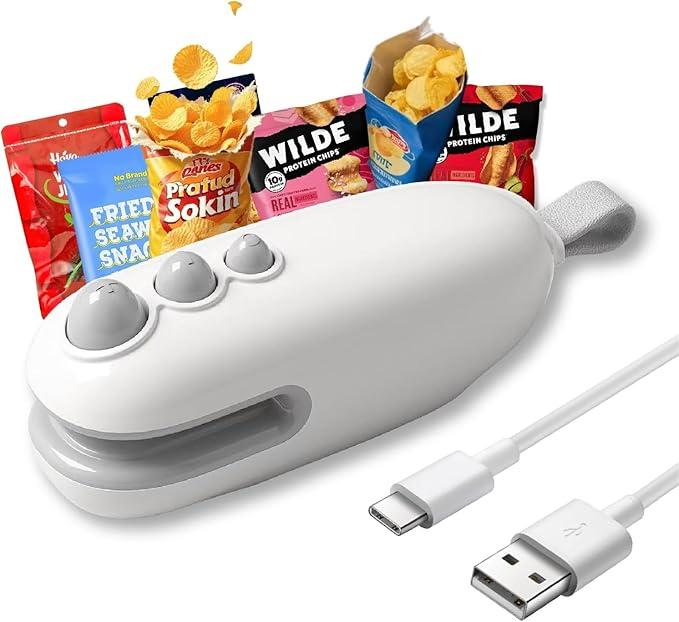 【2-IN-1 SEALER AND CUTTER】- This mini Sealing Machine for Food Packets acts as both a sealer and cutter. You can use it to cut snack bags or other bags and then seal them again using the chip bag sealer.
